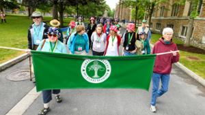 The annual meeting of the Alumni Association is held on Sat., June 13 in the Chapel. The program includes the introduction of the 50th class, choir performances, and the presentation of the Hamilton and Kirkland half-century annalist letters. The Bell Ringer Award is presented at the assembly to a member of the alumni community.