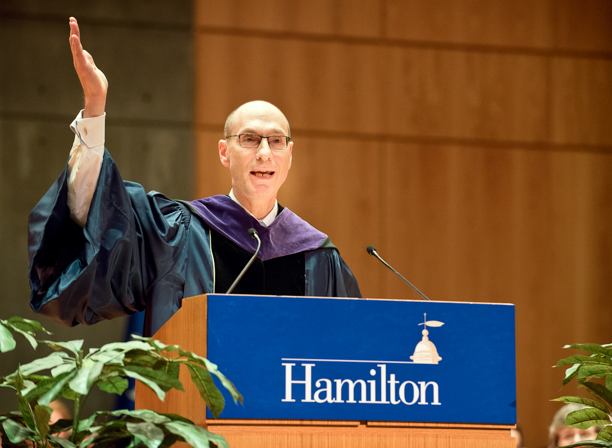 Hamilton College opens its academic year at the end of August with a traditional Convocation ceremony. Members of the administration welcome students and new faculty, and academic achievement prizes are awarded to students.