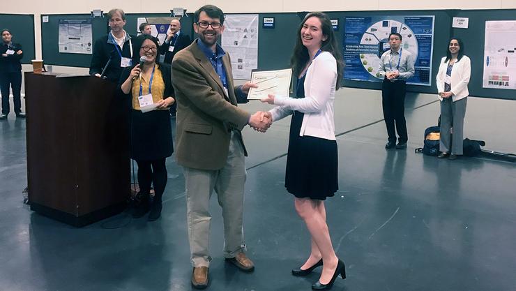 Erin Lewis ’18 received one of five Undergraduate Poster Awards given by the Computers in Chemistry Division at the 253rd National Meeting of the American Chemistry Society (ACS). The meeting took place in San Francisco April 2 to 6.