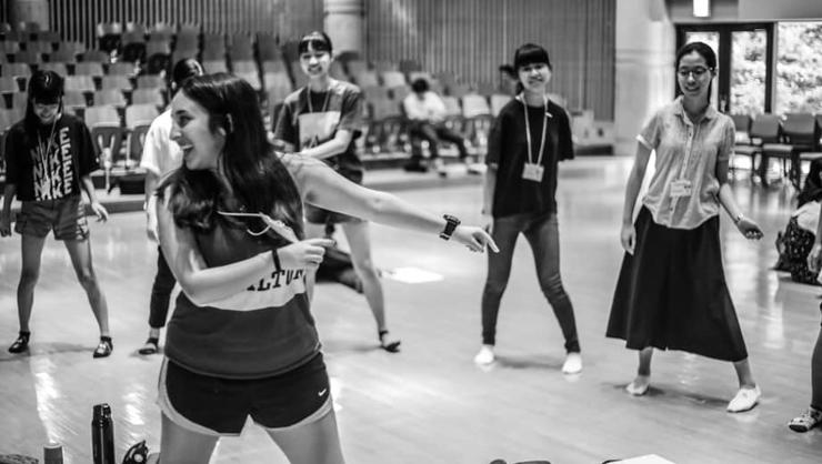 Faby Alvarez ’22 presents a dance workshop to Japanese high school students in 2019.