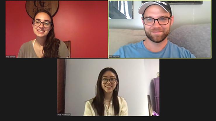Although laboratories are closed, online libraries are open. And COVID-19 isn’t stopping Associate Professor of Chemistry Max Majireck, Amy Glanzer ’21, and Holly Hutchinson ’21 from conducting chemistry research this summer.