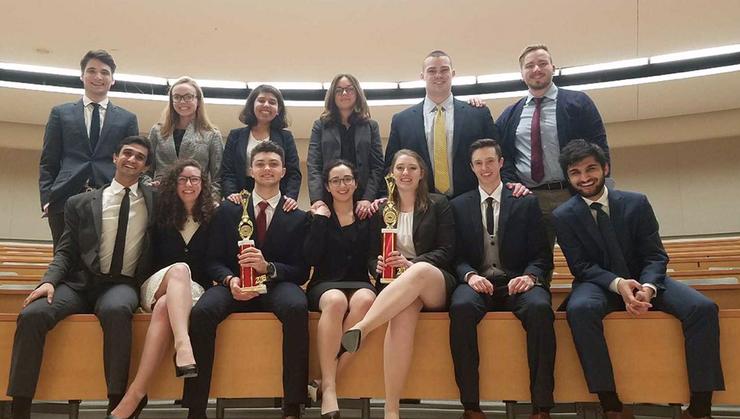 This past weekend, Hamilton’s two mock trial teams competed at SUNY Buffalo, in the Regional American Mock Trial Association (AMTA) tournament. Out of 20 different teams, the seven top scoring teams advance to the next round, the Opening Round Championship Series. Both Hamilton teams received bids to advance, with the Hamilton A team placing third and the Hamilton B team placing seventh.