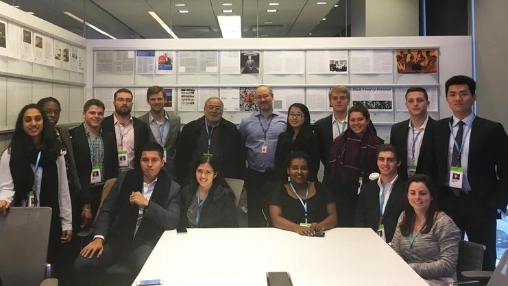 The New York City Program visited the headquarters of Bloomberg on Dec. 11 and were hosted by Hamilton alumnus Scott Havens ’95 who is the company’s global head of digital.