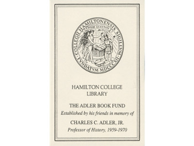 Charles C. Adler, Jr. was a professor of European history at Hamilton College from 1959-70. Established in his memory in 1970, with many small gifts from friends and family, this fund provides for the purchase of library books in the areas of Russian history and literature.